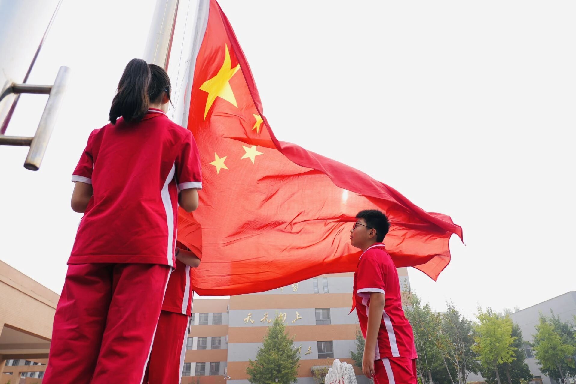 升国旗仪式庄严肃穆,全体师生高唱国歌,少先队员们敬队礼,目光追随着国旗缓缓升起,爱国之情在每个人心中激荡。