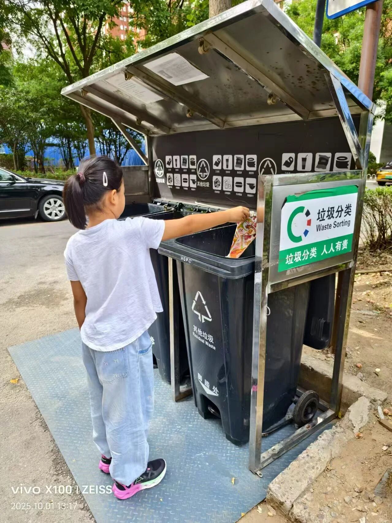 家是最小国,国是千万家。1-3年级学生发起“我为社区添光彩”志愿服务,孩子在家长陪伴下成为“楼道美容师”“银发守护者”“旧物循环官”。一张志愿服务记录卡,记录的不仅是行动,更是付出的快乐与成长的印记。爱国,不再是一句口号,而是融入日常的具体行为——爱社区、爱邻里、爱家园,在亲子互动中传递“小行动里的大爱”。