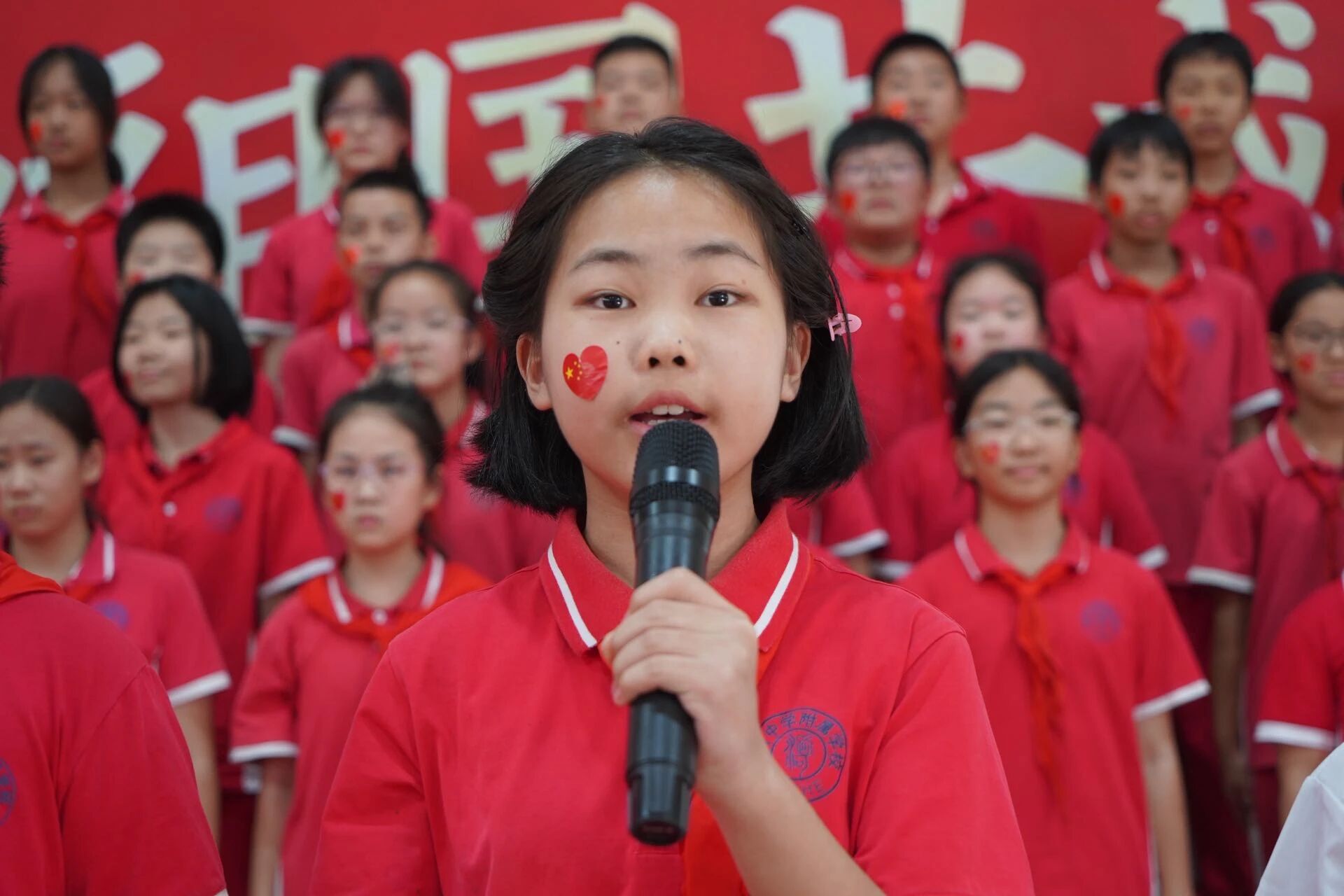 “我和祖国共成长”师生同诵现场,当铿锵的童声与深情的师诵汇聚,共同喊出“祖国,我爱你”时,真挚的情感在会场澎湃流淌。孩子们清澈的眼眸里映着旗帜的鲜红,激昂的语调中满怀着对历史的敬仰。