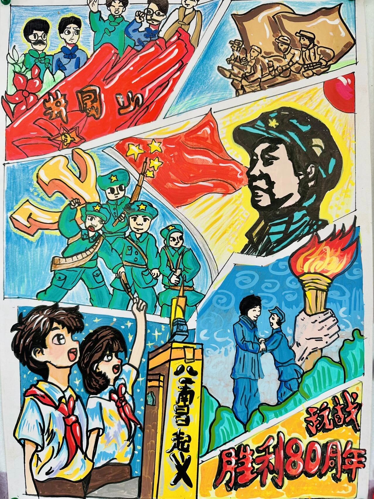 “班级文化墙”中,孩子们亲手绘制国旗、收集抗战影像、讲述英雄故事,让爱国情在“身边空间”自然生长。