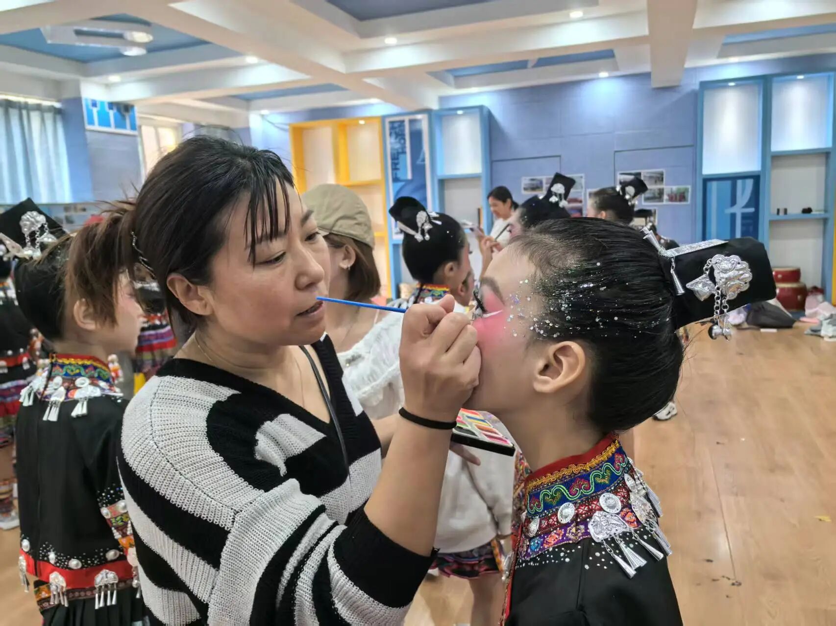 舞蹈队员早晨6点半到校集合,紧锣密鼓的开始准备化妆。老师和热心的家长帮孩子们作演出前的准备工作。我们取得的每一份成绩都离不开家长们的全力支持与配合!