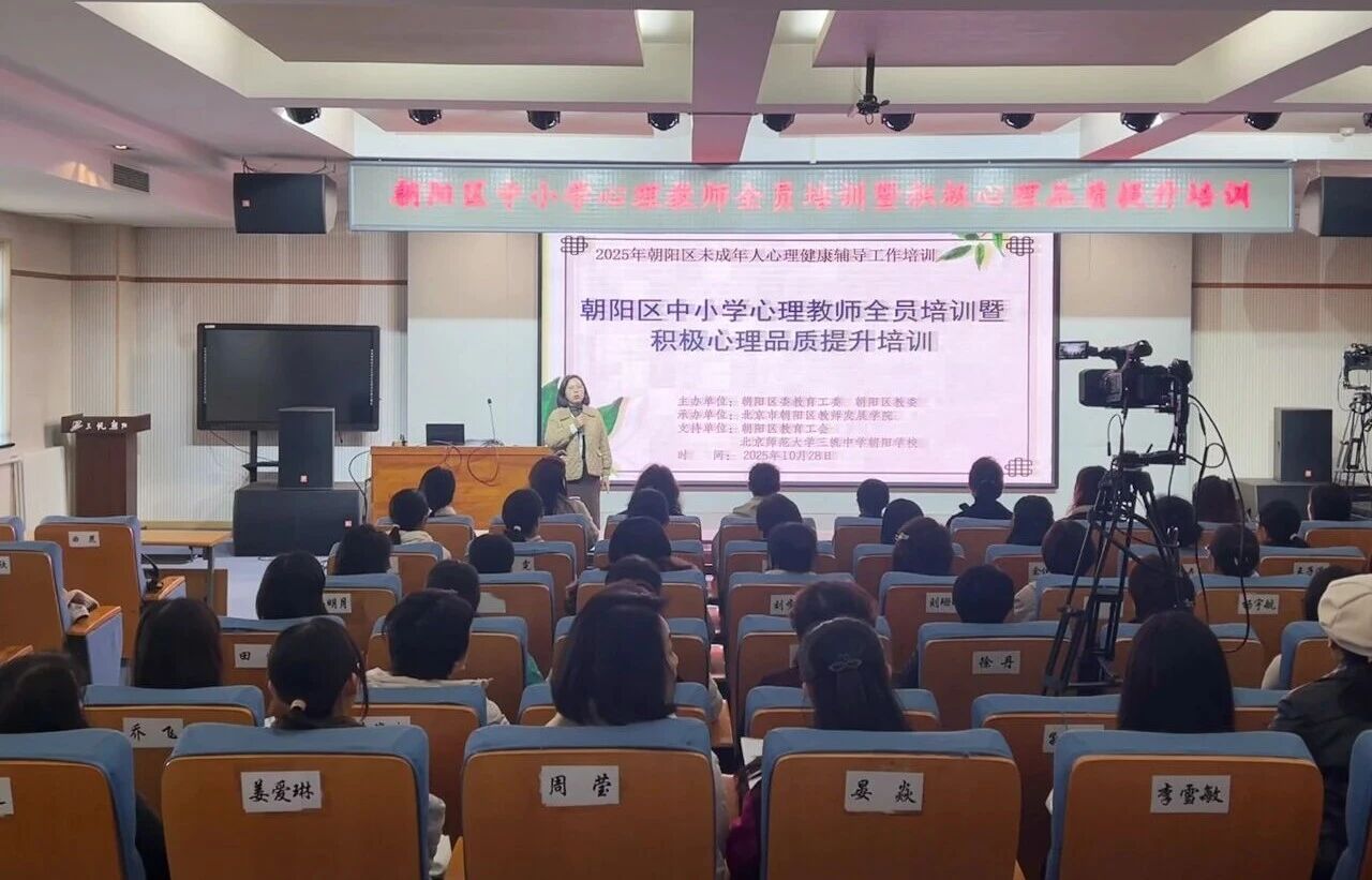 ÎªÏµÍ³ÍÆ½ø³¯ÑôÇøÖÐСѧÐÄÀí½¡¿µ½ÌÓýÄÚº·¢Õ¹£¬È«ÃæÌáÉýÐÄÀí½ÌʦµÄ×¨ÒµËØÑøÓëʵ¼ùÄÜÁ¦£¬2025Äê10ÔÂ28ÈÕ£¬¡°³¯ÑôÇøÖÐСѧÐÄÀí½ÌʦȫԱÅàѵôß»ý¼«ÐÄÀíÆ·ÖÊÌáÉýÏîÄ¿¡±µÚÆß´ÎÅàѵÔÚ±±¾©Ê¦·¶´óѧÈý·«ÖÐѧ³¯ÑôѧУ¿ªÕ¹¡£±¾´ÎÅàѵÑûÇëÇ廪´óѧÉç¿ÆÔºÉç»áÐÄÀí·þÎñÑо¿ÖÐÐĽ²Ê¦¡¢»ý¼«ÐÄÀíѧר¼ÒÁõ¼Ò½Ü×÷ΪÖ÷½²ÀÏʦ£¬ÒÔ¡°½¨¹¹ÉúÃüÒâÒ壬¼¤»î³É³¤¶¯Á¦¡ª¡ª»ý¼«ÐÄÀíѧÔÚ½ÌÓýʵ¼ùÖеÄÉî¶ÈÓ¦Óá±ÎªÖ÷Ì⣬Òýµ¼½ÌÊ¦ÕÆÎÕÅàÑøÑ§Éú»ý¼«ÐÄÀíÆ·ÖÊÌØ±ðÊÇ¡°ÒâÒå¸Ð¡±µÄ¿ÆÑ§ÀíÄîÓëʵÓòßÂÔ£¬ÊµÏÖ´Ó֪ʶ´«ÊÚµ½ÐÄÁéÅàÓýµÄÓýÈËÉý¼¶¡£